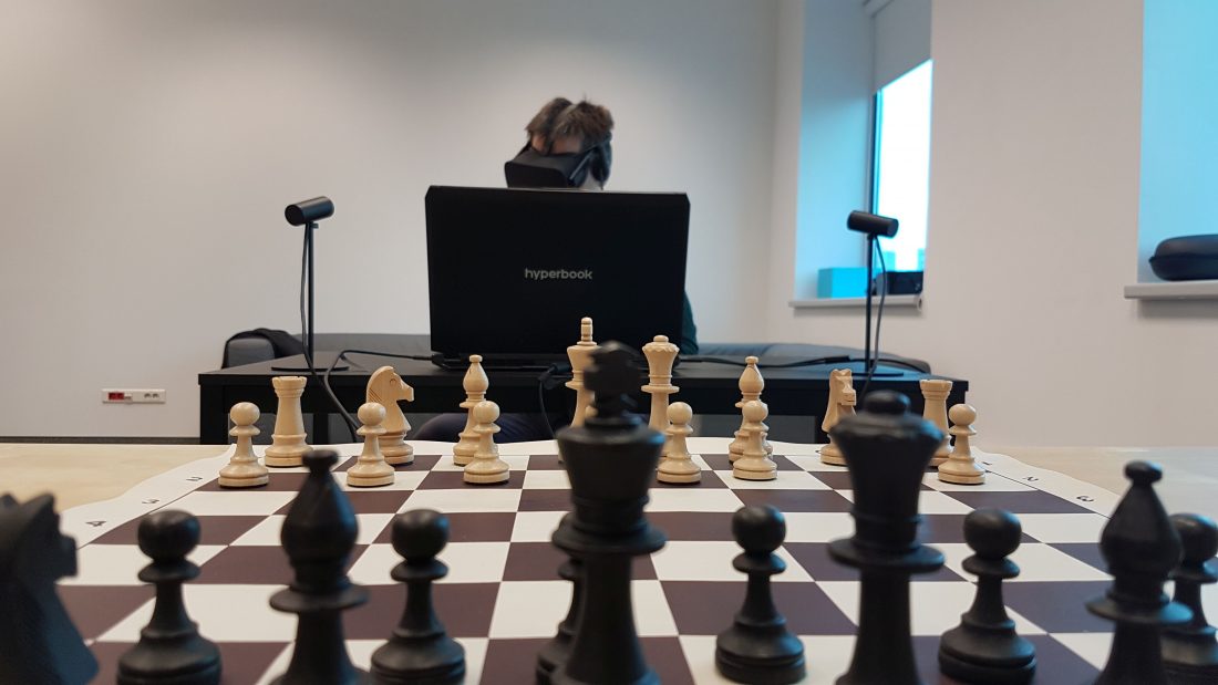 One of the first (or maybe even the first?) games of chess in history played in virtual reality took place at the office of the Warsaw-based Immersion company.