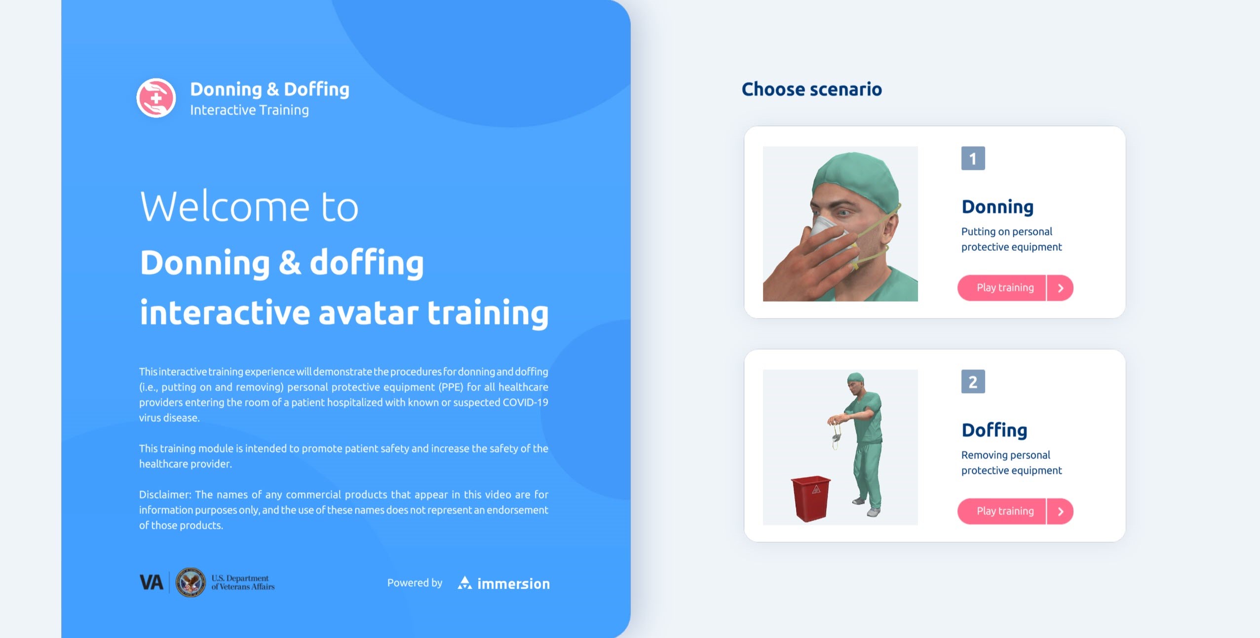 Responding to an urgent need to protect U.S. Department of Veterans Affairs (VA) healthcare workers and COVID-19 patients, we partnered with the agency to provide an interactive training experience to reduce contamination at a critical point – when “donning and doffing” personal protective equipment (PPE).