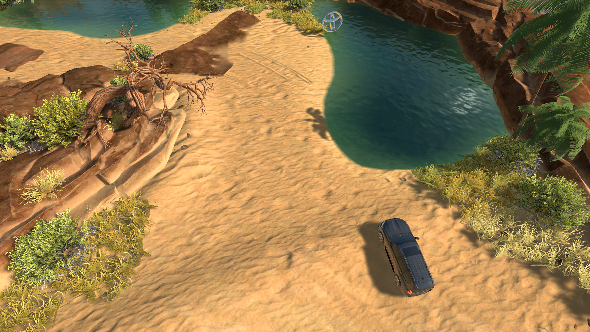 “Land Cruiser 5 continent drive” is an AR (Augmented Reality) experience for mobile devices in which a player has a unique opportunity to drive the most wanted Toyota model in 5 different environments and landscapes without the need to travel and with the ability to go to any place they want. The user places a 3D terrain in his house or outside using AR and then drives the car around it. 5 available maps include such biomes as hot desert, winter landscape, rocky islands, and exotic islands as well as a wild tundra. There are two driving modes to try out, a regular one and a turbo mode for those who love to drift.