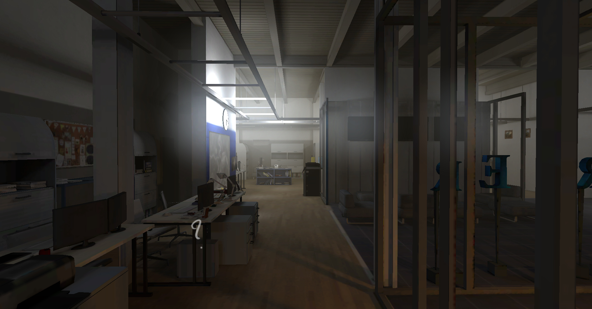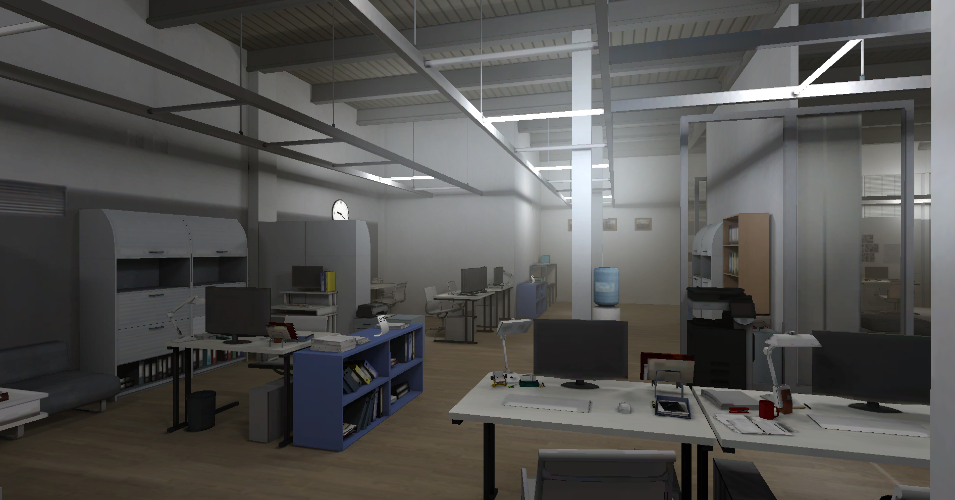 To recreate the location as precisely as possible, we used 3D scanners. The user’s task is to find evidence hidden in the office. Once they find the right hint, a series of 360-degree videos are shown, including a racing crash and a skyscraper collapse.